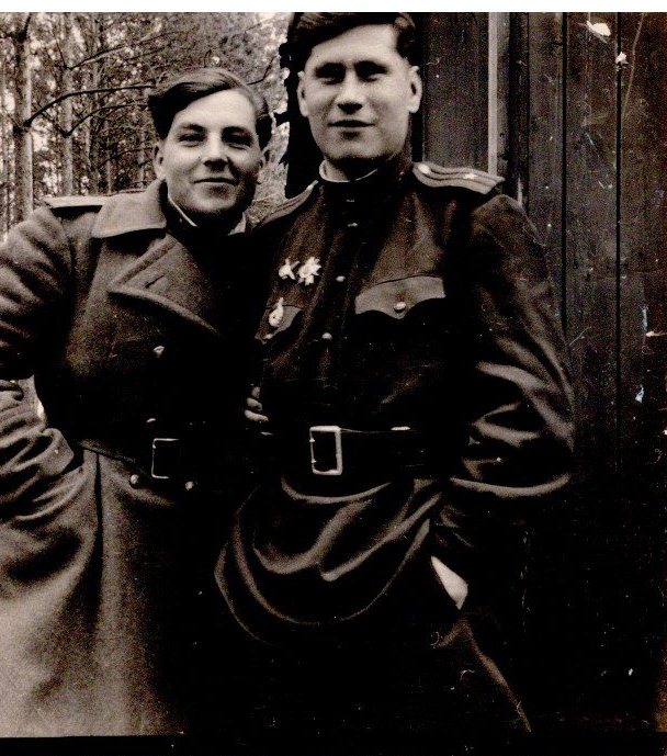 На фото Владимир Горбунов (справа) с командиром санитарного взвода А. Плечищим, 20 марта 1945 год