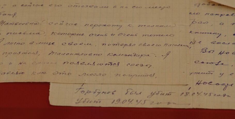 - Владимир Иванович Горубнов в конце марта 1945 года отправил своим родным в Омск жену в положении, с наставлением охранять и беречь самое ценное, что у него есть. И есть его апрельское письмо жене… Он переживает, как она добралась, всё ли хорошо. Там такая тоска по любимой женщине, по дому <…> Командир батальона, суровый комбат, пишет слова любви, пишет, как он скучает, переживает, говорит, что места себе не находит в своём бараке, - рассказывает Наталья Храпова.