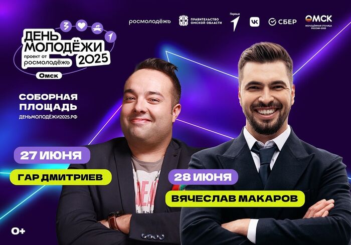На Соборной площади 27 июня выступит омская группа "5УТРА", а 28-го - JONY и Егор Крид. Ведущими будут финалист Высшей лиги КВН, резидент Comedy Club Гар Дмитриев и артист, певец, музыкант, популярный телеведущий Вячеслав Макаров.