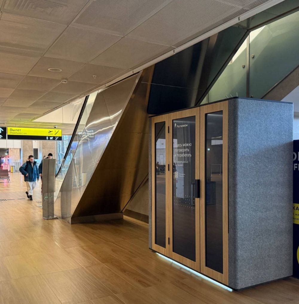 "Ростелеком" установил цифровую акустическую кабину в международном аэропорту Красноярск им. Д.А. Хворостовского. Сибирский аэропорт стал первым объектом авиатранспортной инфраструктуры, пассажиры которого могут воспользоваться сервисом аренды технологичного рабочего пространства.