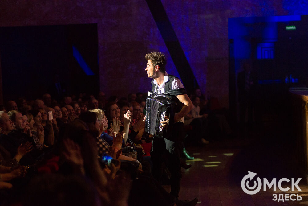 С собой Петр Дранга возит два аккордеона - черный и белый, но в Омске он выступал только с черным, отделанным перламутром, который так и переливался. Всего у музыканта пять инструментов - все они изготовлены в Италии на заказ.