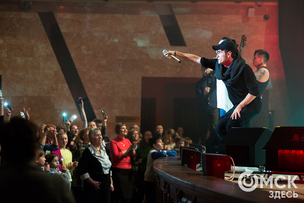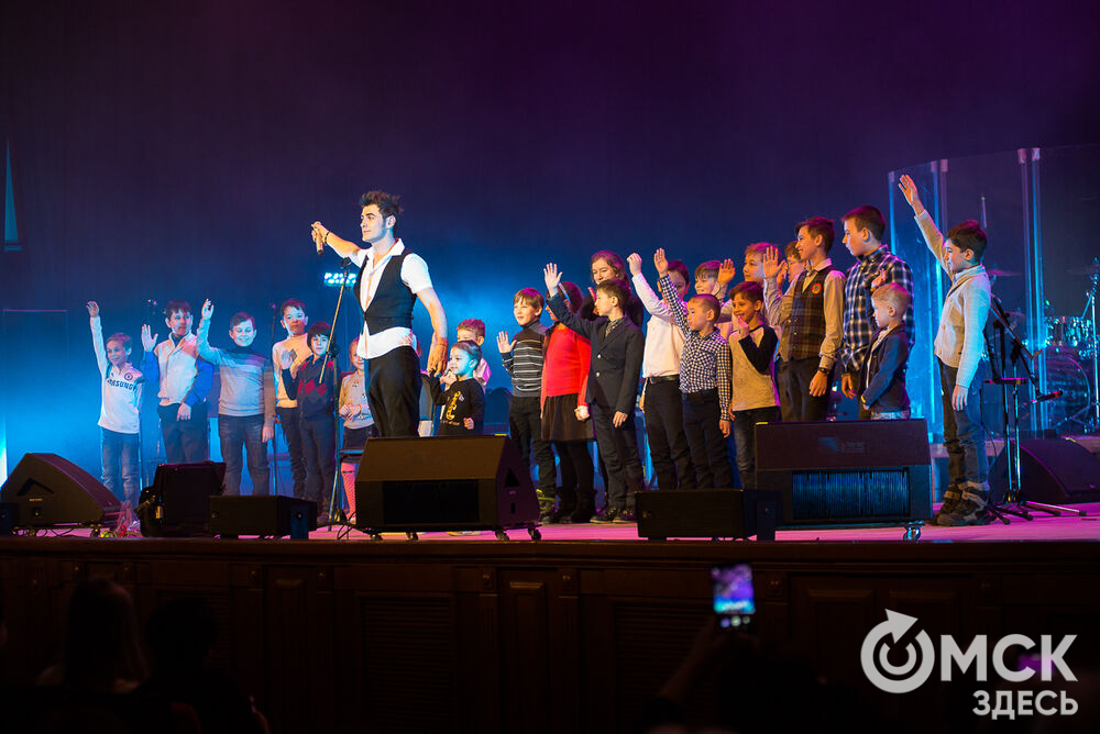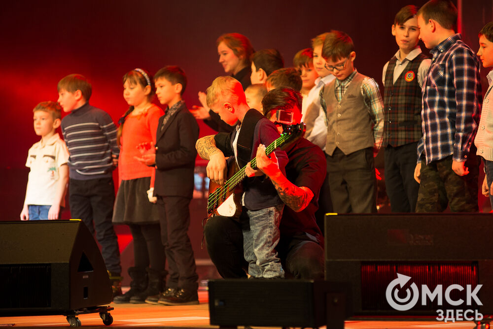 Музыкант пригласил на сцену всех пришедших на его концерт детей и дал возможность сыграть на его инструменте. Юный омич исполнил на сцене мелодию знаменитых "Омских улиц".