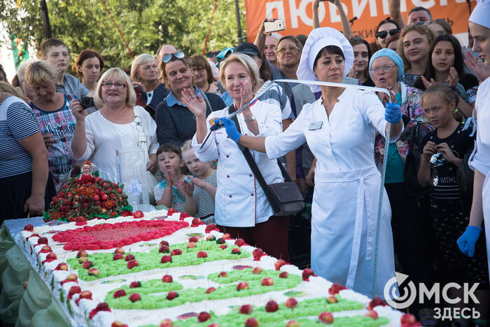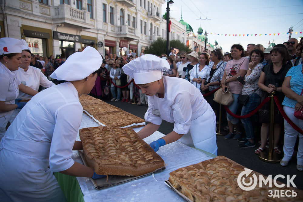 Одним из самых ожидаемых событий фестиваля стало создание самого большого яблочного пирога в Омске. На его приготовление ушло 800 яиц, 55 килограммов яблок, 15 килограммов муки, 50 килограммов сахара. Кондитеры из нескольких ресторанов и кафе Омска составили и украсили пирог длиною 5 метров 72 сантиметра.