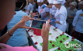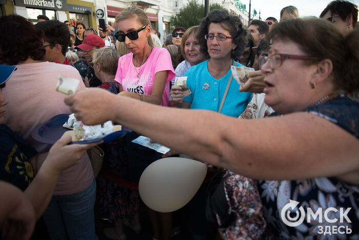 Омичи выстраивались в очередь, чтобы отведать угощение. Последний кусочек забрали уже через 40 минут. Стоимость порции составляла 50 рублей. Вырученные средства организаторы обещали передать благотворительному центру "Радуга".