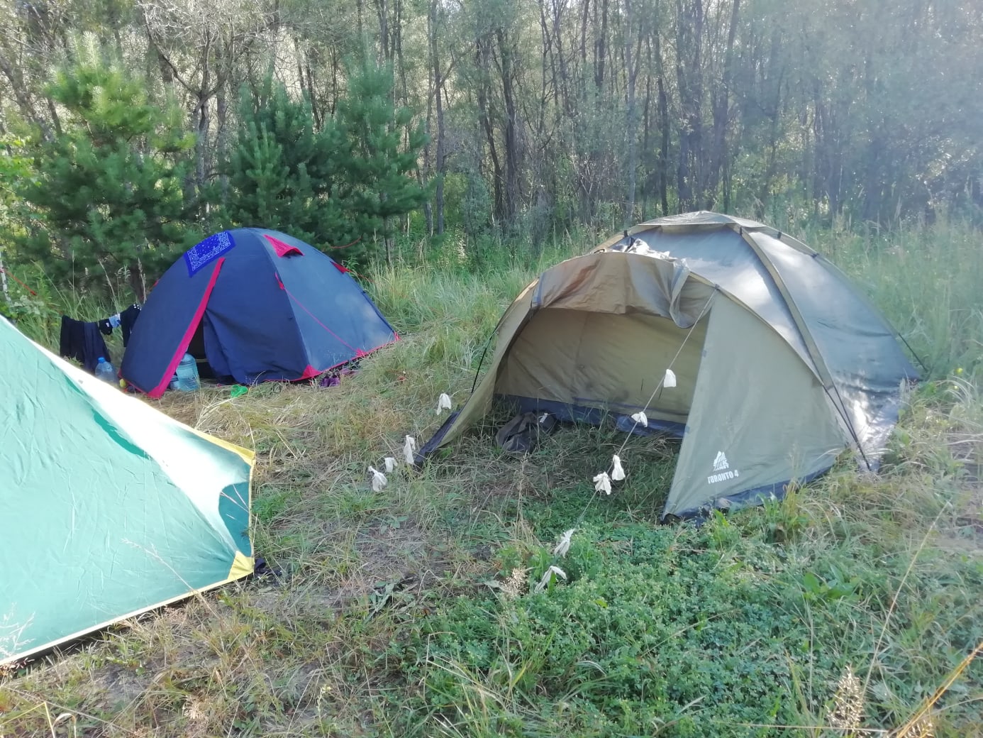 Сытный и вкусный обед и вновь река. Ещё 12 км пути до следующей стоянки. К концу третьего дня туристы добираются до границ районного центра Муромцево. Палаточный лагерь разбивают на одном из обустроенных пляжей района вблизи старичного озера на так называемом Зелёном острове (несколько километров до самого райцентра). Место не просто так получило своё название. Вокруг располагаются великолепные таежные просторы, смешанные леса с грибами и ягодами.
