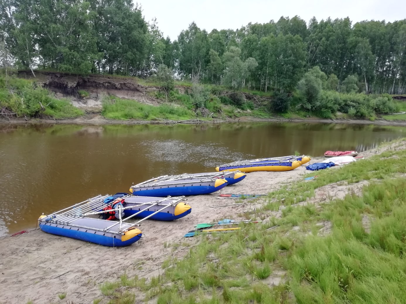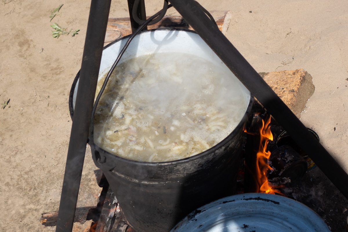 На одном из песчаных берегов катамараны останавливаются, чтобы приготовить обед. Дрова можно найти здесь же. На обед варят суп и чай на травах. Небольшой отдых и снова в путь. Ещё 15 км до ближайшей стоянки. Снова разбивка лагеря, ужин и крепкий сон.
