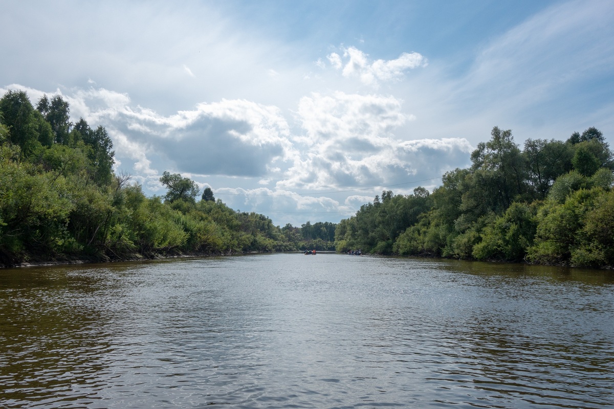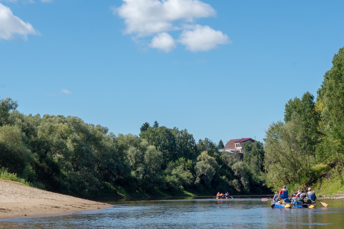 Первые 15 км по реке вниз по течению занимают около 3-4 часов. Команды ищут свой темп, сонастраиваются, определяют рулевого. Самый интересный участок. Это знакомство с водной стихией края и живописной природой берегов Тары. Левый берег - типичная лесостепь с березовыми колками и склонившимися над водой ивами. Правый берег - хвойные леса. Низкие песчаные берега сменяются крутыми обрывами. В них видны гнёзда ласточек. По их границе заметно, как поднимается река в половодье. Летом сложно представить, что ещё пару месяцев назад Тара была шире и выше на несколько метров.