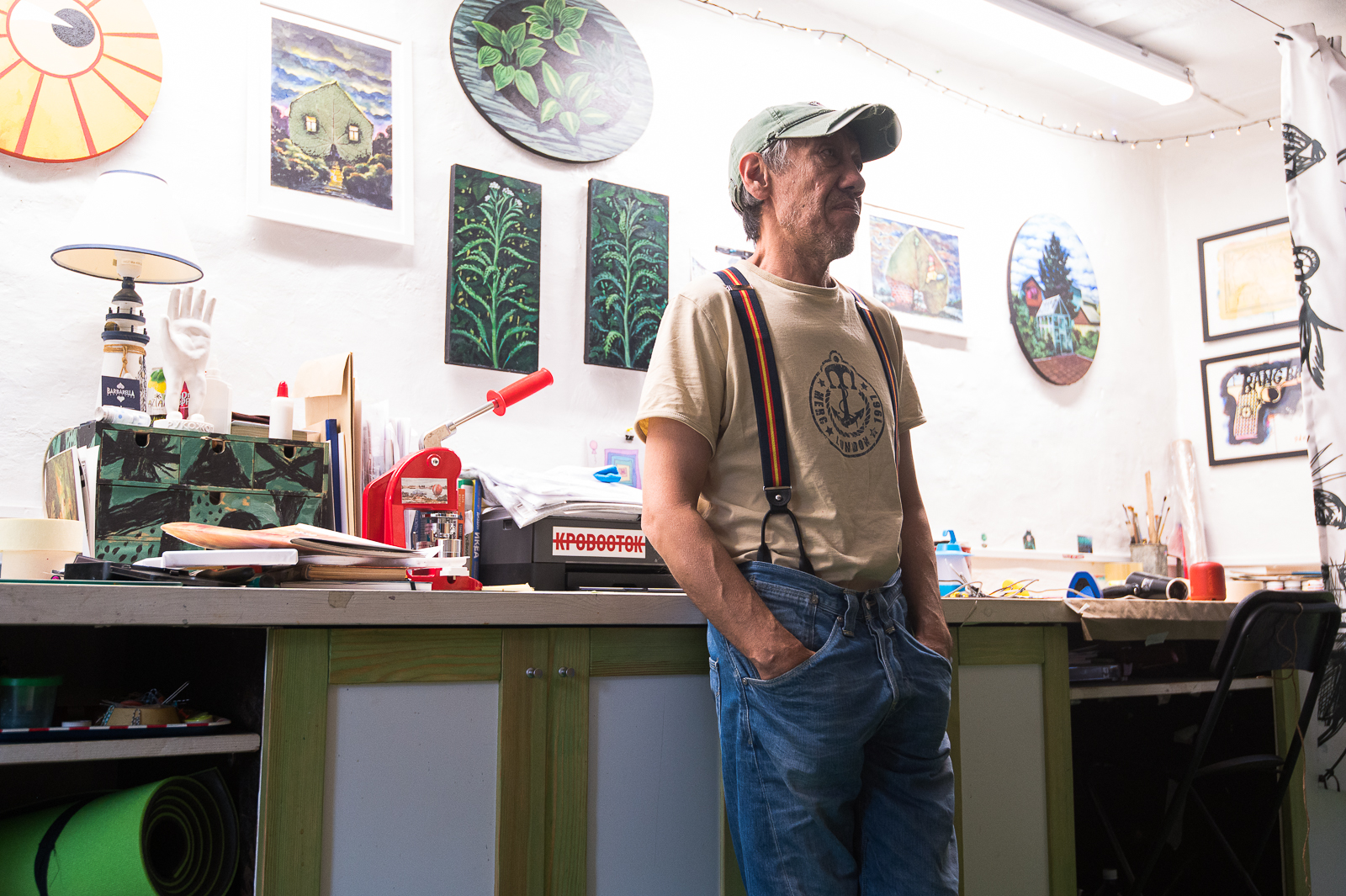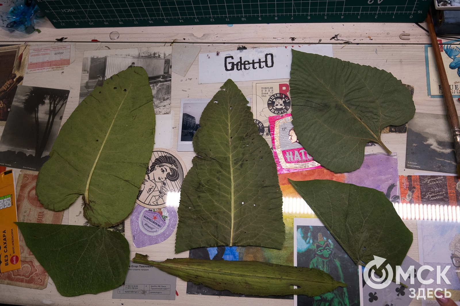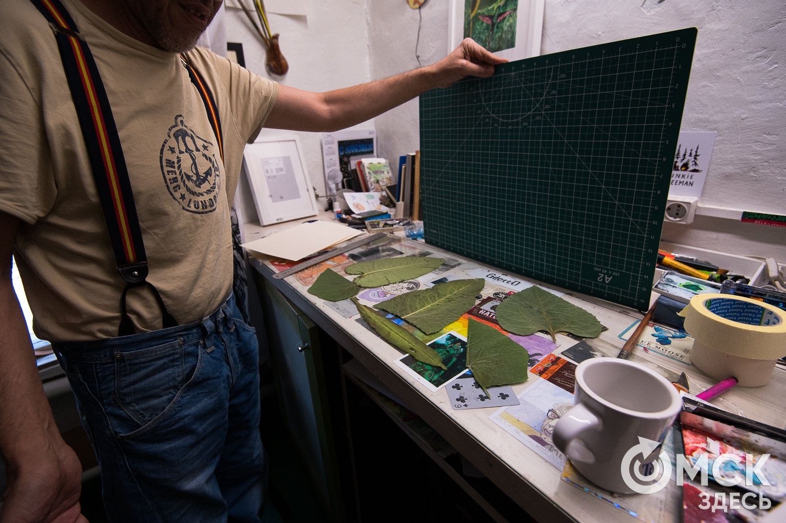 "Омск Здесь" напросился в гости к художнику, чтобы первыми рассказать про серию новых работ из гербария - листьев хрена, репы и огурца.