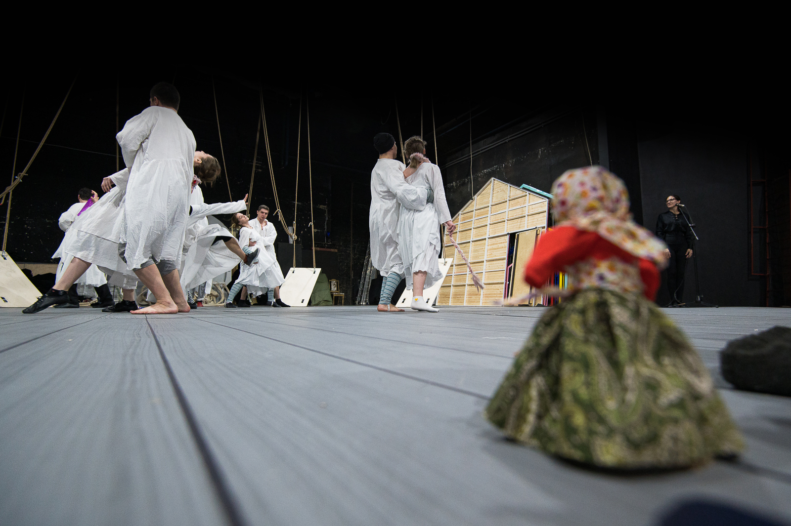 Как рассказали артисты труппы, в день перед спектаклем с самого утра у них начинается тренаж по авторской методике Игоря Григурко и занятия по вокалу с Евгенией Амарцевой, после чего проходит прогон спектакля от и до. Именно в таком режиме они будут работать даже в гастрольные дни в столице.
