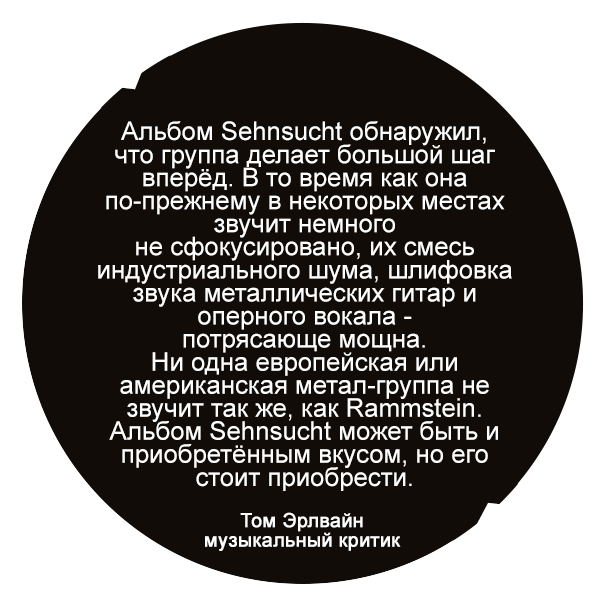 Давным-давно в далёкой Галактике (СНТ "Заря-2") после насыщенного пляжного дня и штурма левобережных островов на огромной надувной камере мы собрались на даче друга и, развалившись на деревянной мебели досоветских времен, упоённо слушали аудиокассету Sehnsucht (1997). Это второй альбом группы Rammstein, который стал платиновым почти сразу после выхода.