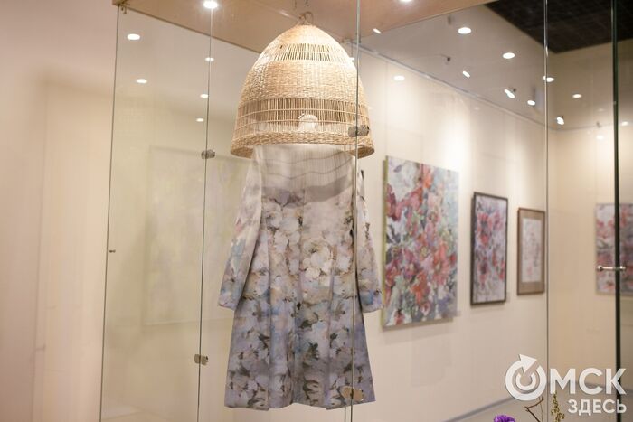 На выставке есть и эксперименты - работы, выполненные на рисовой бумаге, а также результат совместного проекта Натальи Прониной с дизайнером Александром Богдановым - пальто с принтом в виде одной из её картин.