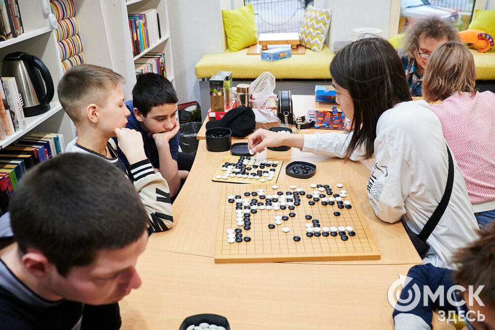 А для тех, кто хотел окунуться в мир восточных развлечений, провели сеанс игры в Го. Существует множество легенд, но никто не знает, где и когда она появилась. По разным оценкам, ей от двух до пяти тысяч лет. В Корее её называют Падук, в Китае - Вейци, а в Японии - Иго. Правила предельно ясны. Участвуют двое: один играет чёрными камнями, другой - белыми. Цель - создать на доске территорию, окружённую деталями своего цвета, и сделать её больше, чем у соперника.