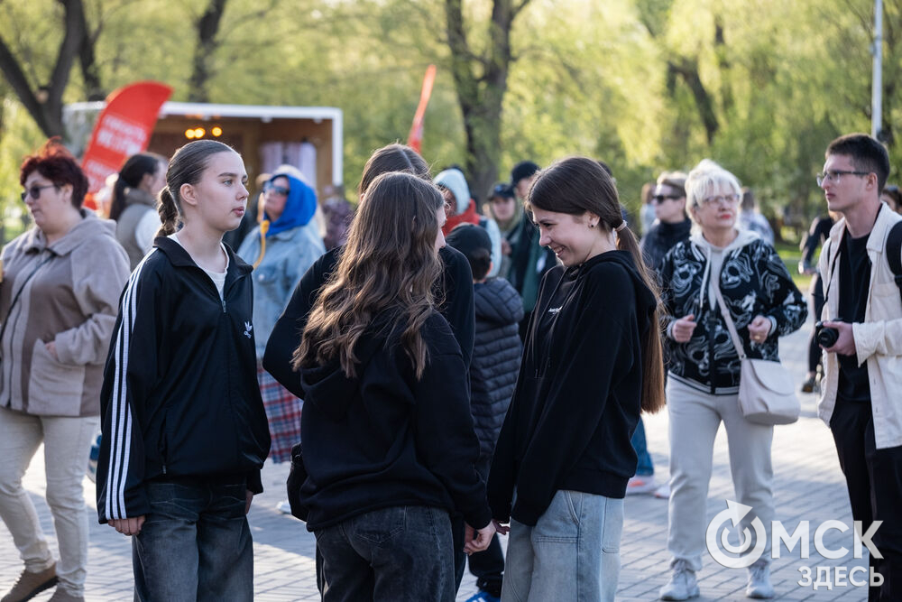 Омичи заполнили зеленеющие аллеи, предвкушая яркие эмоции и весеннее настроение. Для гостей парков была подготовлена насыщенная концертная программа, которая радовала всех присутствующих разнообразием выступлений и музыкой. Маленькие и большие посетители заполнили разнообразные карусели, наполняя воздух смехом и восторженными криками.
