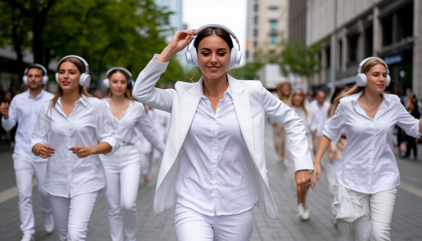 Музыка звучит в наушниках и не мешает прохожим. Плейлист составляется один для всех. Его можно скачать перед самым мероприятием. Люди двигаются в своём ритме без каких-либо требований к уровню подготовки, даже если до этого никогда не танцевали.