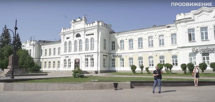 По другую сторону улицы - центр "Эрмитаж-Сибирь". Бывшее здание страхового общества "Саламандра" долгие годы скрывалось под слоем старой штукатурки и краски, дожидаясь реставрации. Ремонтные работы шли четыре года и завершились в 2019-м.
