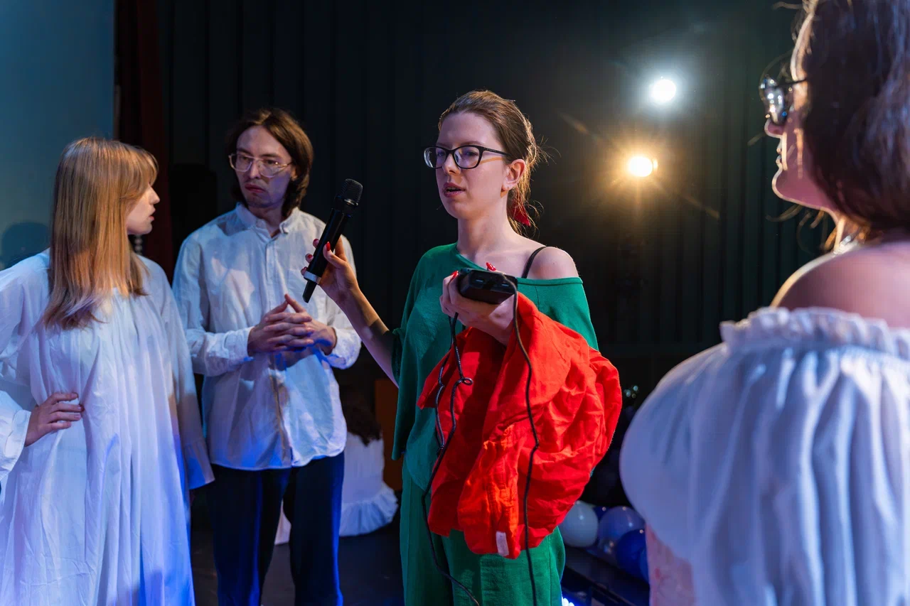 На фото Арина Шульгина, Анастасия Чернышёва и актёр театра Стас Омаров