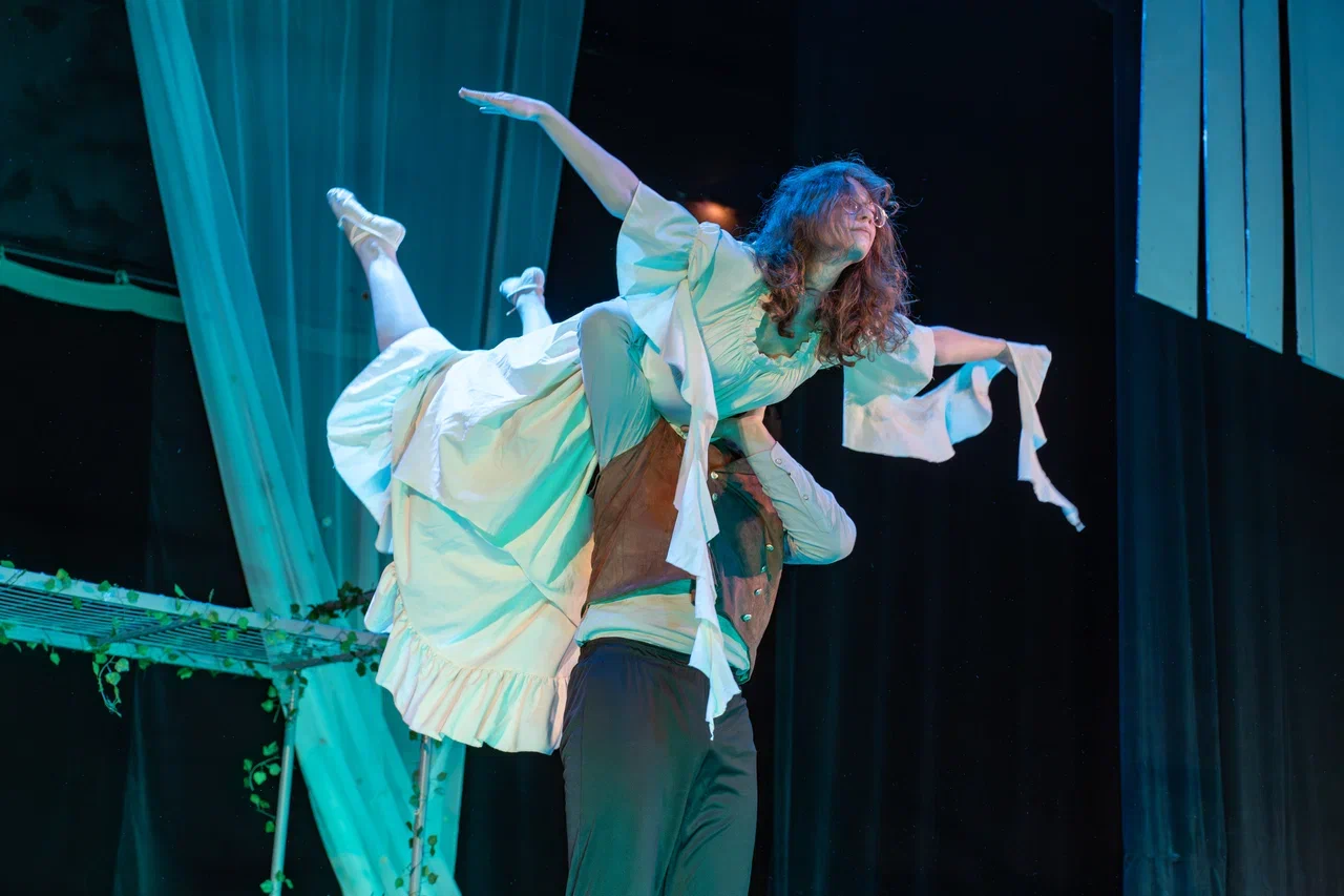 Дарья Балашова и Мария Кот: Да, наша любимая сцена родилась случайно - за 10 минут после трёхчасовой изматывающей репетиции. Уставшие, но с десятым дыханием, мы начали импровизировать в шутку - и получилось то самое пронзительное соло Лермонтова. Честное, надрывное, живое. Режиссёры сразу отметили: этот кусок - особенный. Иногда лучшее рождается неожиданно даже для тебя. Движения же всегда исходят из души - прямо, без обдумывания. Наверное, это можно сравнить с диалогом двух выпивших людей, когда они не думают, они говорят то, что есть у них на сердце прямо сейчас. Для нас движения - это язык вот такого человека под бокалом вина, максимально честный и искренний. Наше тело способно сказать больше, сильнее и ярче, чем умеет наш мозг и язык.