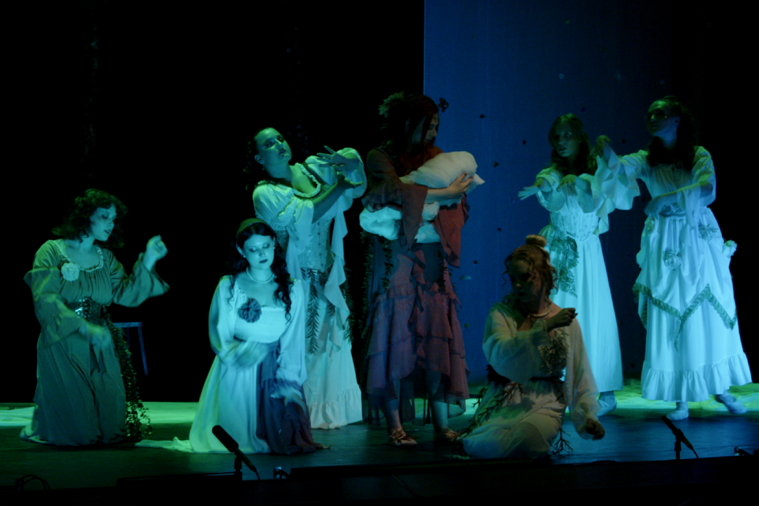 Хореография в "Мишеле" добавляет действию флёр шотландской туманности и эльфийской сказки. Пластические сцены от дуэта the.MANKA (Дарья Балашова и Мария Кот) создают ощущение простора и полёта, как в балладе или древней легенде, где граница между реальностью и сном едва уловима, а сам Лермонтов предстаёт ещё и мистиком, имеющим связи с неизведанным и потусторонним. С первых минут спектакль очаровывает визуальной гармонией и динамикой: от сказаний очаровательных нимф из древних эльфийских легенд (отсылка на мифические корни в биографии поэта, связанные с предком шотландцем Томасом Лермонтом) нас переносят в салоны XIX века с их интригами, цинизмом и опасными забавами высшего света. Порочное красное свечение бальных зал сменяется холодными оттенками Кавказа. Сам Лермонтов как эльфийский изгнанник в мире людей, существует на грани - между поэтическим вымыслом и жестокой реальностью, между детской верой в чудеса и разочарованием взрослого человека.