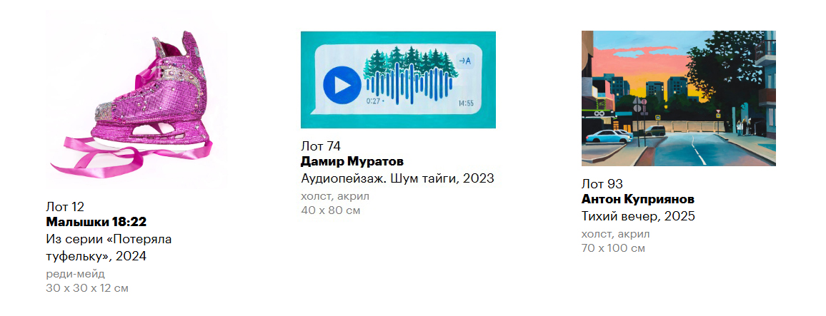 В минувшие выходные состоялся аукцион VLADEY, специализирующийся на работах российских авторов от советского нонконформизма до новейшего искусства. В сотню лотов вошли работы сибирских авторов: "Аудиопейзаж. Шум тайги" Дамира Муратова, мастера соц-поп-арта, который в основном живёт и работает в Омске, "Тихий вечер" Антона Куприянова, участника группы "Сугроб" из Тары, а также арт-объекты из серии "Потеряла туфельку" сестёр Ники и Аксиньи Сарычевых из Томска, известных как бьюти-вандалистки "Малышки 18:22" и показавших нам "Нежный Омск" и то, как "Красоту спасёт мир".