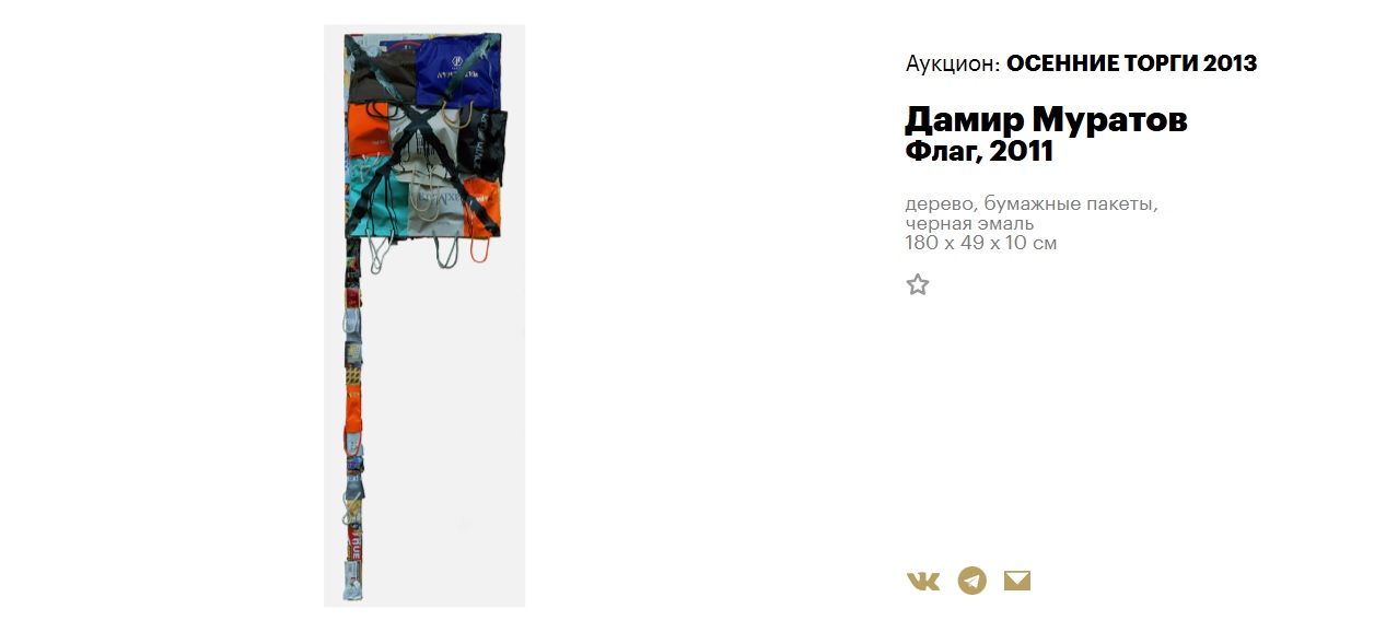 В проекте аукциона художник участвует практически с его основания, с 2013 года. Тогда выставлялась инсталляция из бумажных пакетов модных и ювелирных магазинов "Флаг".