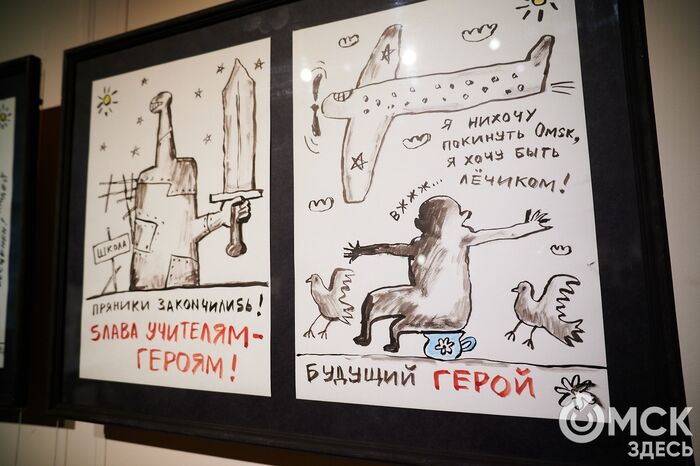 - Я нихочу покинуть Омsк, я хочу быть лёчиком! - кричит его маленький герой, сидя на горшке, по-новому конструируя меметичную фразу "Не пытайтесь покинуть Омск".