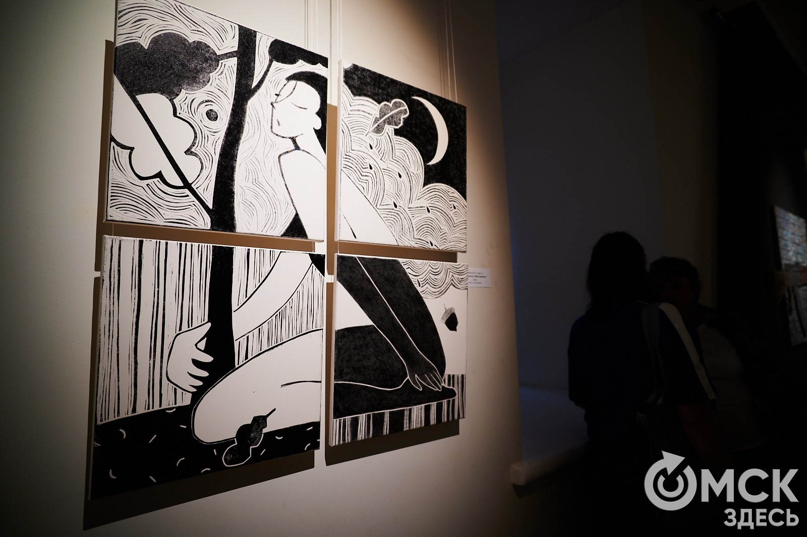 - Если говорить о болезненных темах, то меня реально удручает, что, гуляя по городу, встречаю места, на которые мне не хочется смотреть. Есть архитектура, которую мне не хочется видеть. Есть бесконечные рекламные вывески, которые некрасивые. Хотя в нашем городе и на моём курсе обучалось много талантливых дизайнеров, в том числе и графических. Но все они уехали в другие города. Спроса на хорошего дизайнера, хорошего художника, на человека, который хорошо будет влиять на внешний вид города, у нас нет. Почему-то не так много людей, которых интересует эстетика, - делилась художница Ксения Романенко, чей романтичный квадриптих "Моё дерево" тоже представлен на выставке.