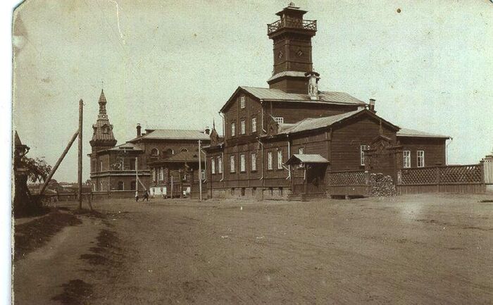 Здание Городской думы (позади) и Полицейское управление в конце XIX - начале XX вв. (ОГИК музей/goskatalog.ru); дело из фонда Омской городской управы "О 200-летнем юбилее основания г. Омска" (Исторический архив Омской области)