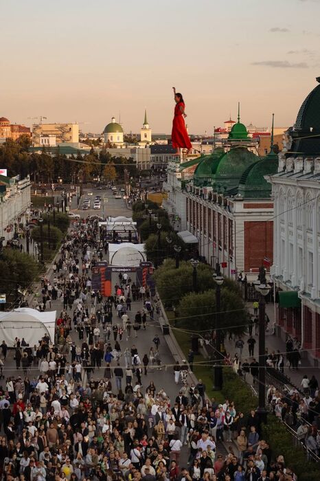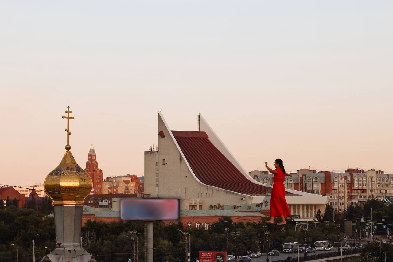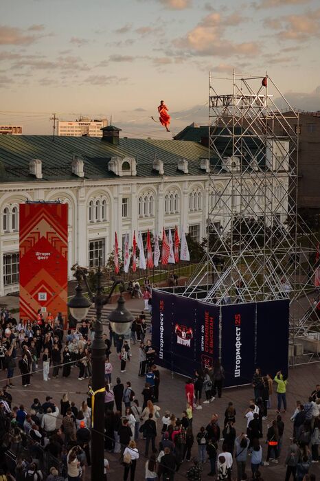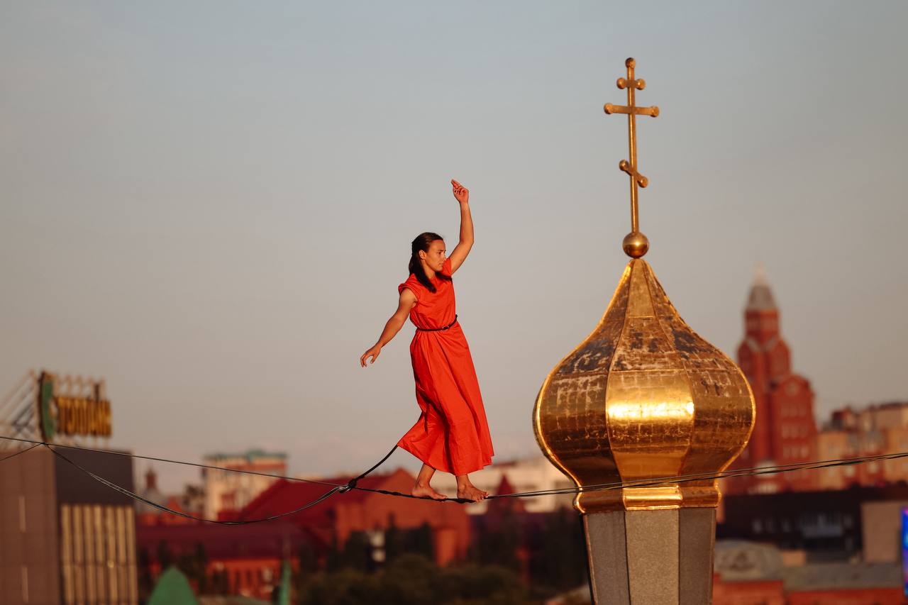Хождение по канату накануне, 9 августа, продемонстрировали мастер спорта по альпинизму Владимир Мурзаев и чемпионка России по хайлайну Татьяна Черемхина, приехавшие из Москвы. Как уточнили в областном минспорта, стропа была натянута на высоте 15 метров, а её длина составила 70 метров.