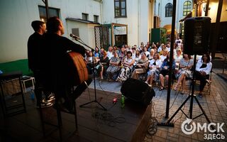 Концерт во дворике пройдёт именно в таком формате. На сцене - Олег Берков (вокал, гитара) и Павел Астафуров (звук).