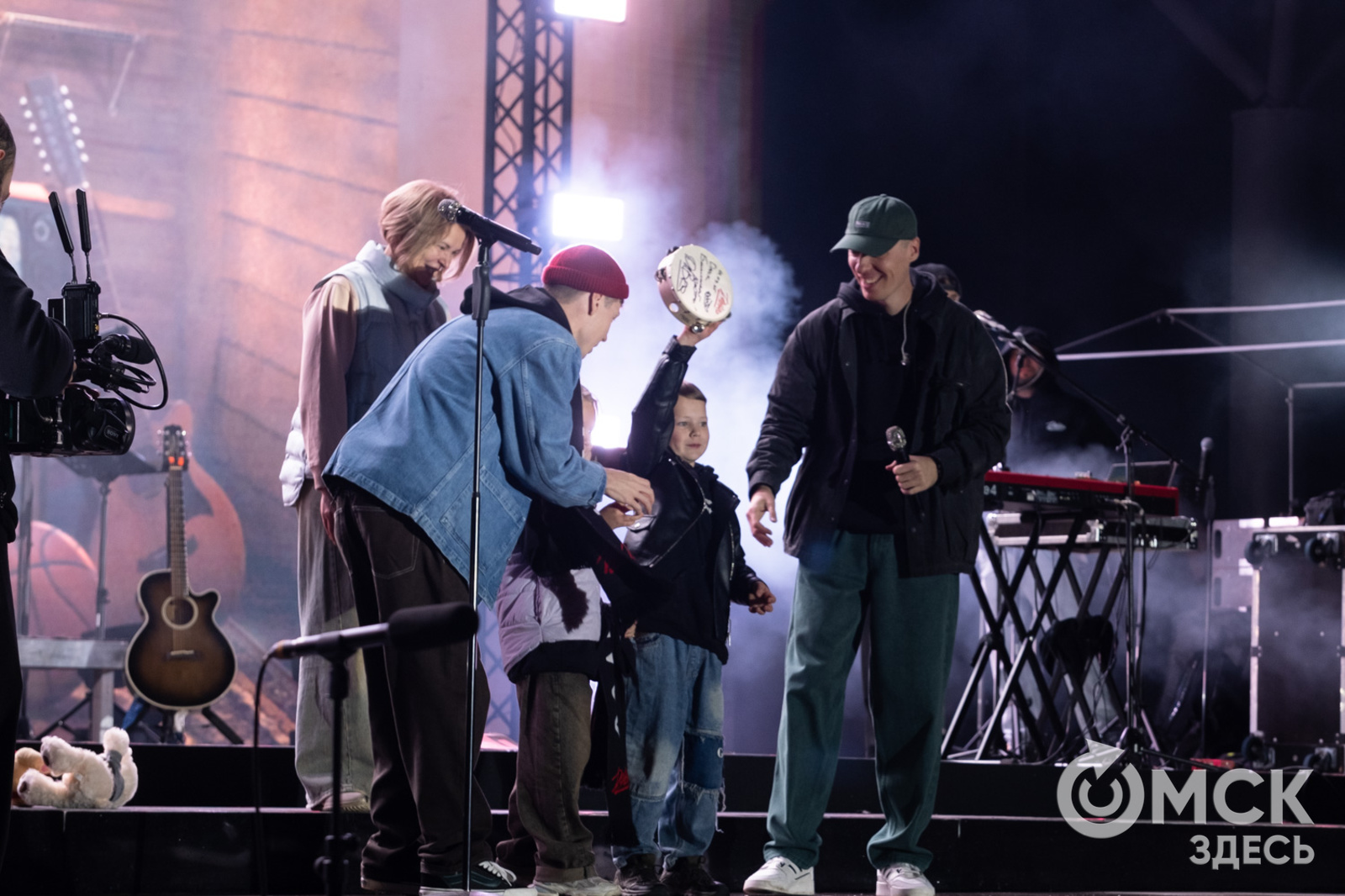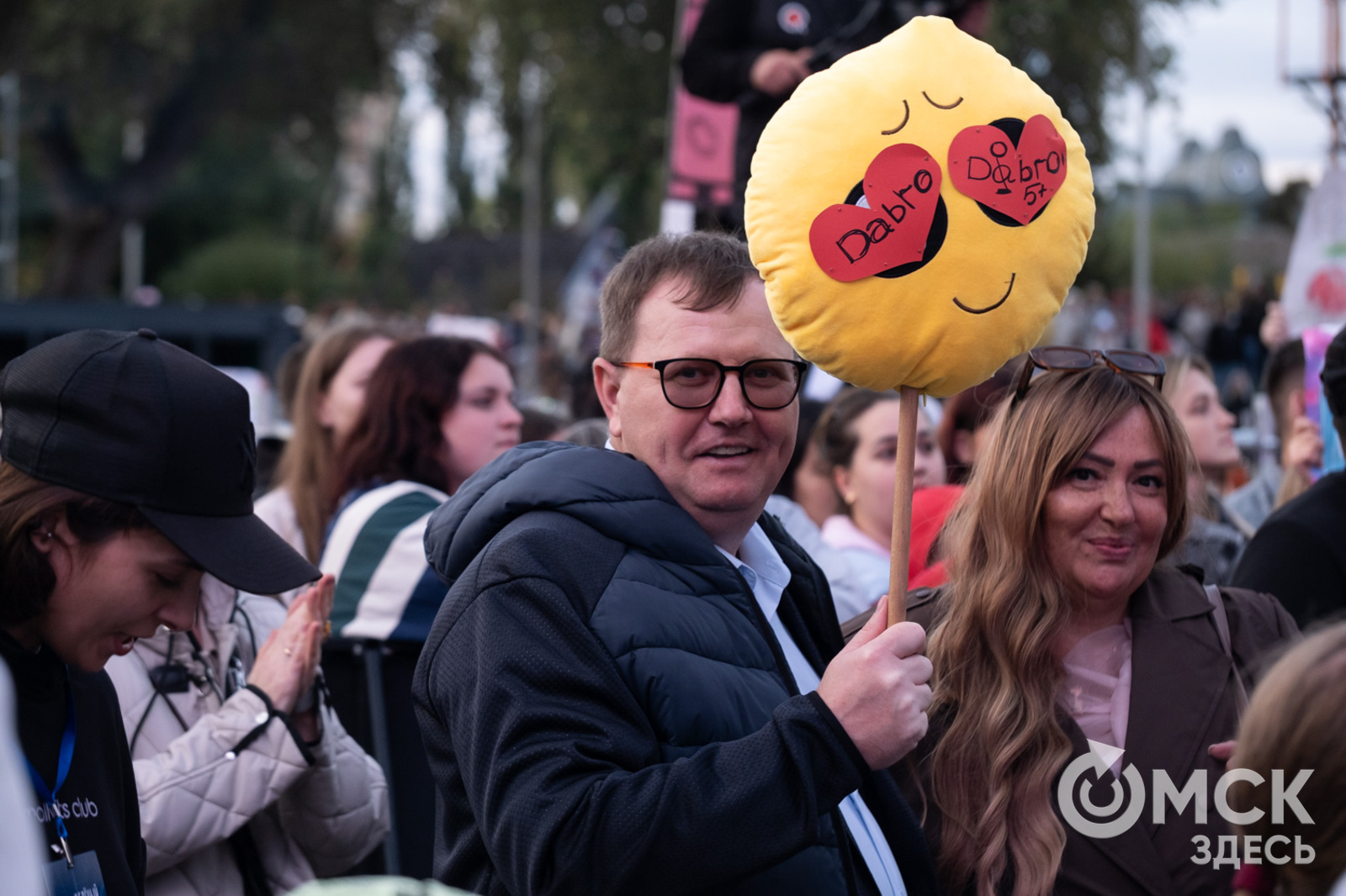 Заряд позитива омичи получили ещё перед выходом музыкантов на сцену: разогревал публику кавер-бэнд "НАЗАРЕ". Солистка группы после своего выступления призналась, что давно мечтает посетить полуостров Камчатка, и вдруг из толпы откликнулся некий Владимир - учитель истории, недавно переехавший в живописный край. Мужчину пригласили на сцену, и он в свою очередь поздравил омичей с началом нового учебного года. Он поделился со зрителями своими надеждами на то, что Камчатка станет домом не только для него, но и для его любимой девушки Ольги. Пригласив её на сцену, мужчина опустился на одно колено и сделал ей предложение.