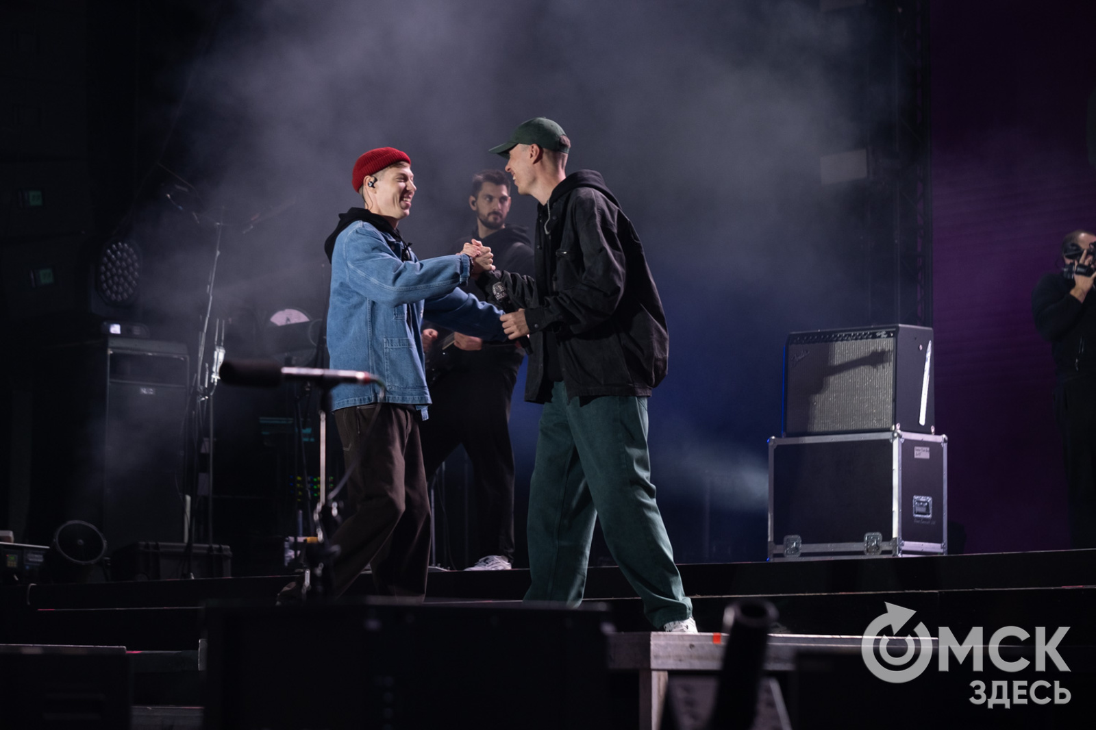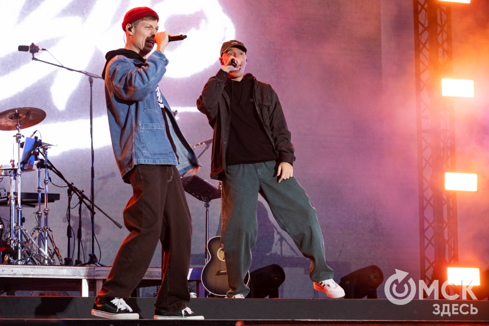 Солисты поприветствовали фанатов, поздравив их с первым днём осени, а потом исполнили свои главные треки: "Дальше-больше", "Юность", "Услышит весь район", "На часах ноль-ноль", "Мне не страшно", "Надо повторить". Вместе с артистами фанаты танцевали, пели, мечтали, любили. И несмотря на то, что возле главной сцены Зелёного острова собралось много людей, а некоторые даже сидели на плечах друг у друга, тексты песен братьев создавали камерную атмосферу домашних посиделок. А тепло и простота их строчек согревали в этот прохладный вечер.