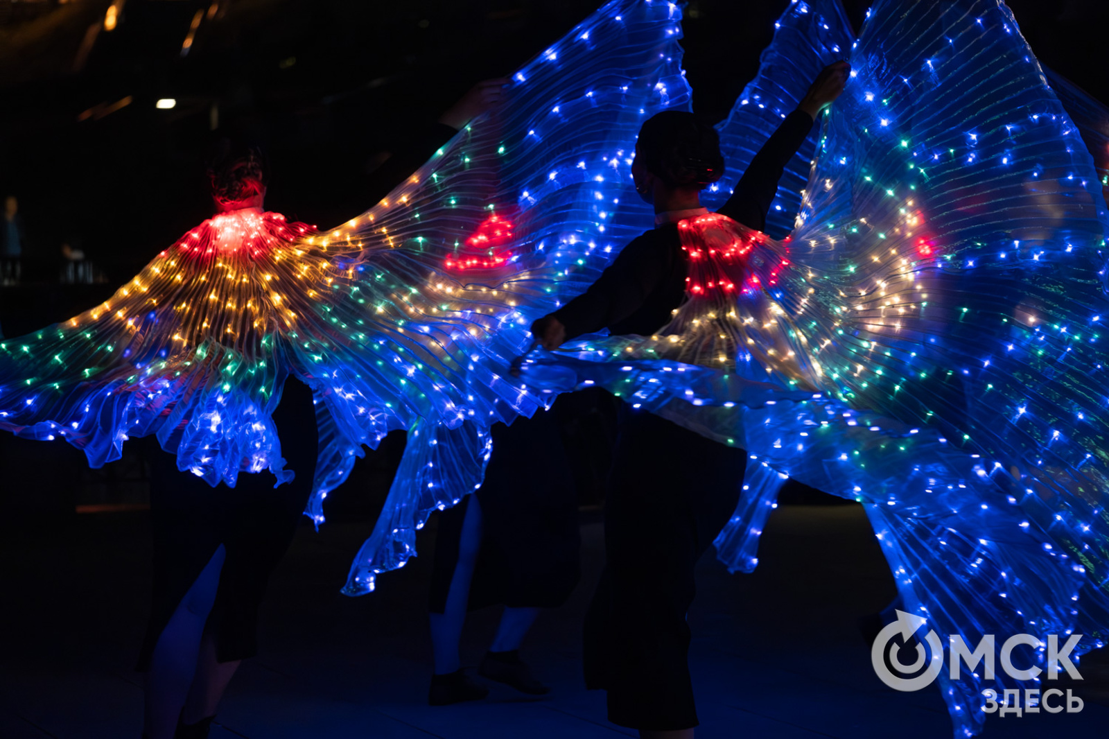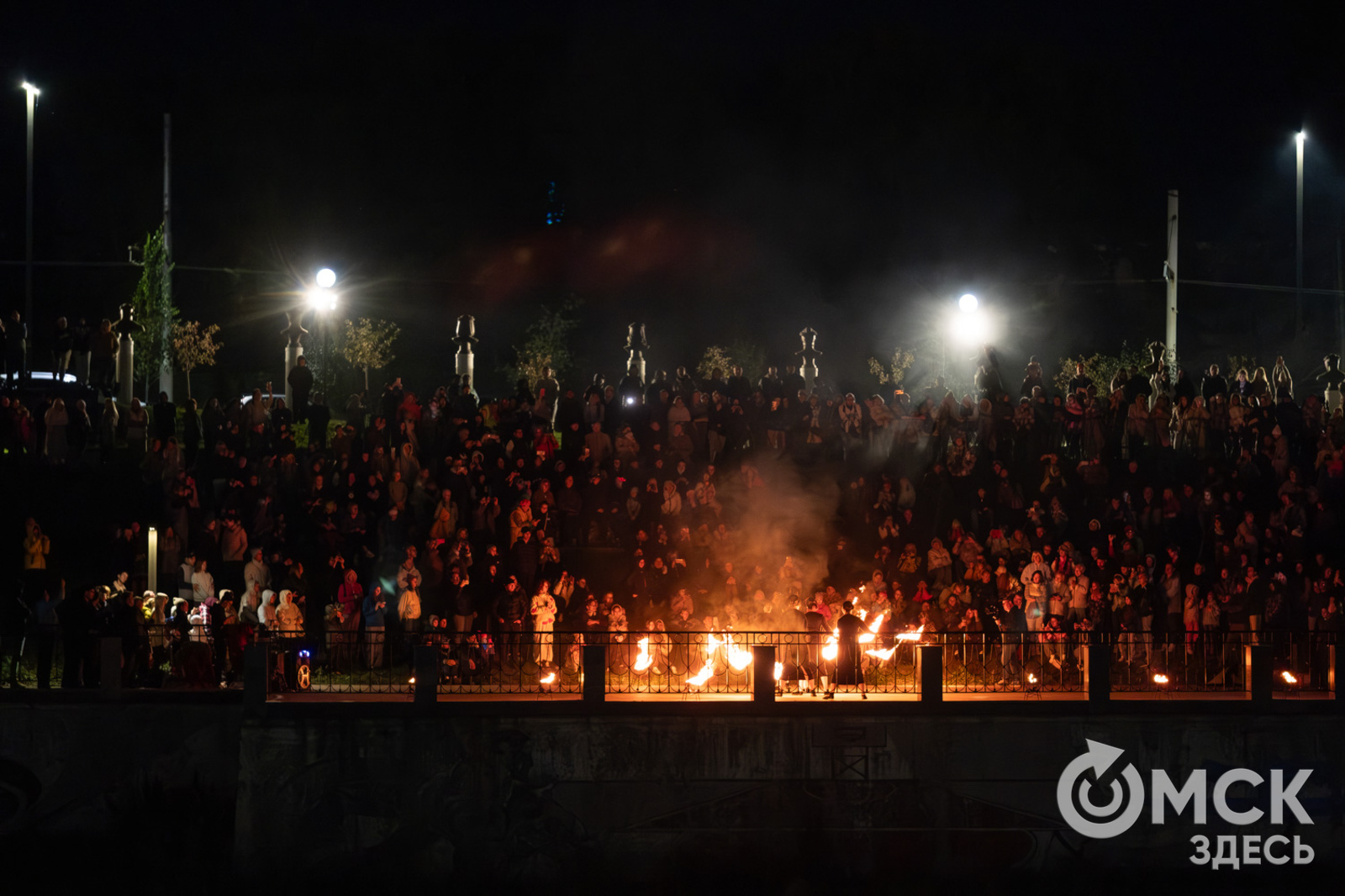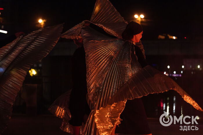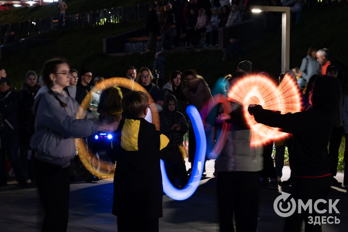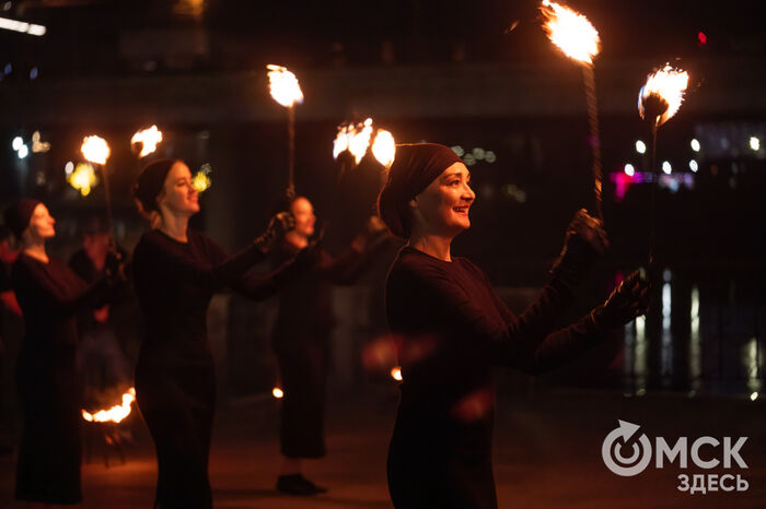 Накануне, 13 сентября, между Юбилейным и Комсомольским мостами полыхало пламя, сверкали светодиоды. Программа "Искры города" объединила выступление театра огня и света "Гало", который 8 лет назад возник на базе одноимённого творческого центра, и студии танго La cumparsita.