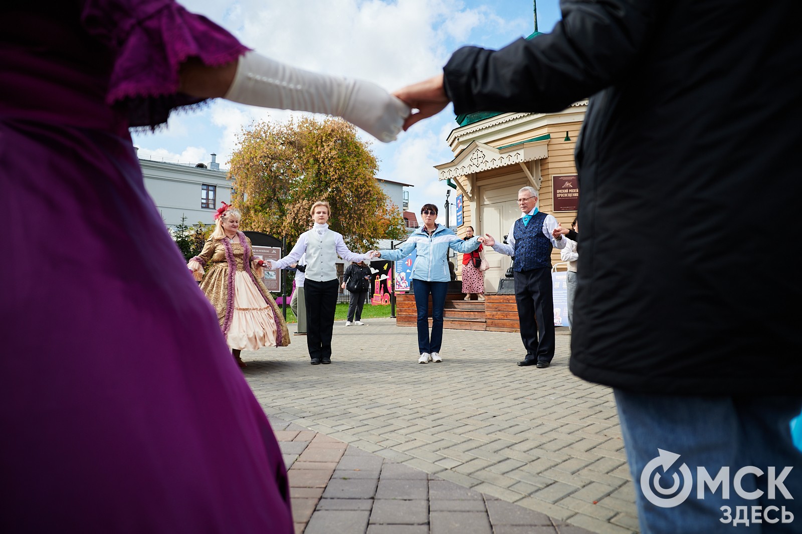 "Омск Здесь" тоже принял участие в акции и посетил городскую танцевальную прогулку. Мероприятие прошло в исторической части города - рядом с Омским музеем просвещения. Вместе с хореографом Владимиром Ганжиным участники погрузились в атмосферу XIX века и бальную культуру: приняли участие в мастер-классе по вальсу, а также узнали о правилах этикета, которые соблюдались дамами и кавалерами во время танца.