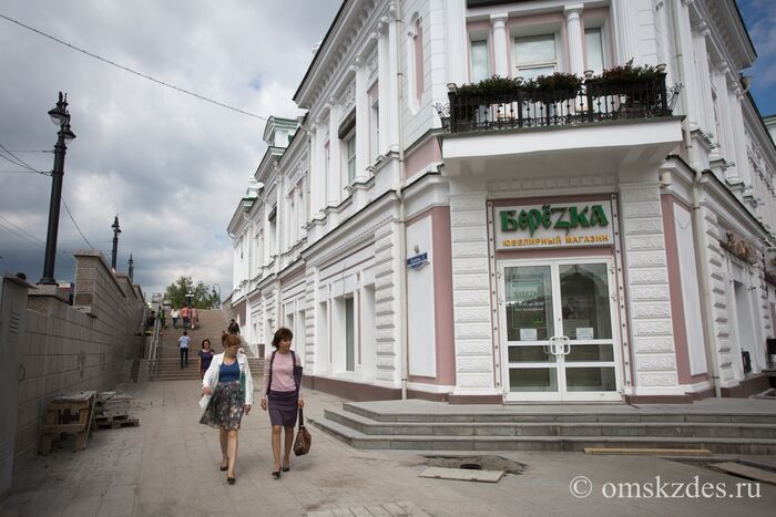 На втором этаже магазина, помимо ещё одного торгового помещения, располагалась и квартира Шаниной. Рядом - её же особняк, одноэтажный, визуально более сдержанный. Это здание на ул. Дзержинского, 1а (здесь находился погоревший грузинский ресторан) тоже сохранилось, признано объектом культурного наследия, как и торговый дом. Доходы позволяли купчихе также являться одним из главных ссудозаёмщиков омского отделения Госбанка (об этом мы вскоре расскажем подробнее).