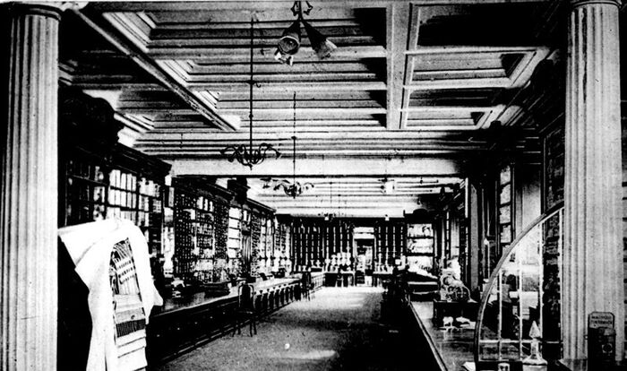 Всё внутреннее убранство - витрины, полки, шкафы - было из красного дерева, в помещении имелось множество зеркал, уточнили в архиве. Масштабы по тем временам были внушительные. Похожим ассортиментом через дорогу торговало товарищество "Братья Овсянниковы и А. Ганшин с сыновьями" (ныне стоматология ОмГМУ).