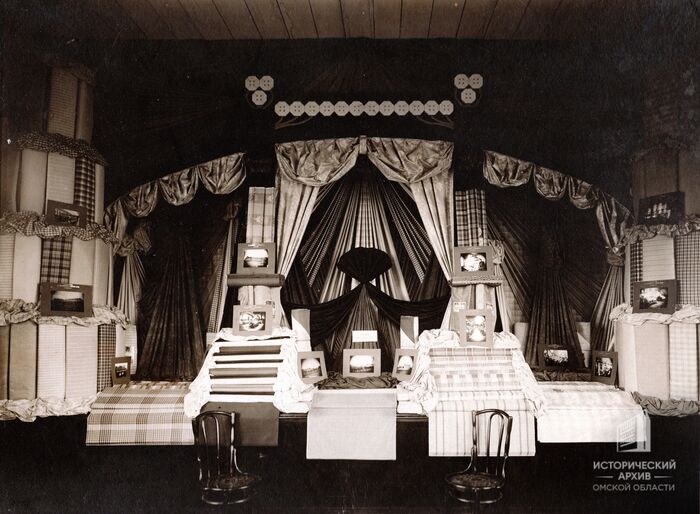 Отдел тканей, мануфактурный отдел и общий вид в начале XX в. Источник: А. Антонов, фотофонд Исторического архива Омской области