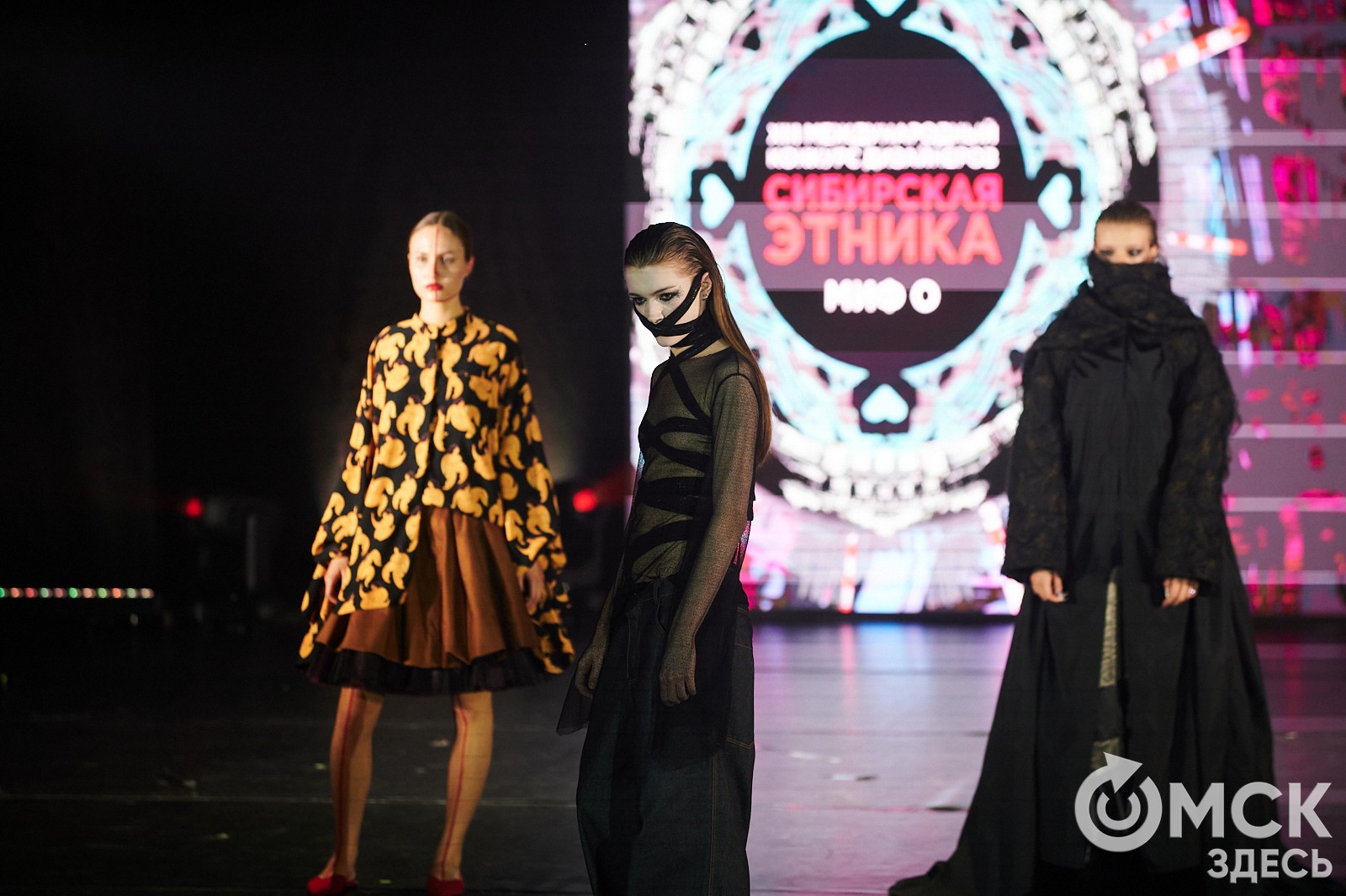 В прошлом году фестиваль состоялся в 13-й раз. Из 124 претендентов в финал прошли 65 проектов из 15 городов России, Беларуси, Казахстана и Узбекистана. В 2024 году добавились номинации, а главное событие - гранд-дефиле - проводилось на сцене "Пятого театра". Темой стал "Миф О". О себе, городе, семье, культуре, даже если она не родная. То есть обо всём, что нас окружает и вибрирует в сердце. Так, если в конкурсе дизайна платков, который тоже является частью "Сибирской этники", нашёл отражение известный омский леттеринг "Радость", то здесь, например, воплотились метрополитен, асфальт и чалдоны - первые сибирские поселенцы, к которым в последнее время активно обращаются и другие фестивали в поисках самобытности региона.