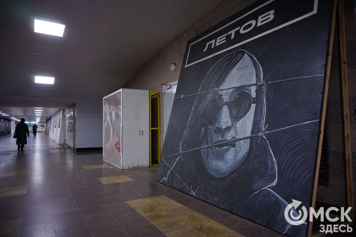 Презентация девелопера в рамках Дней архитектуры в Омске и граффити с Егором Летовым, использовавшиеся в ограждении стройплощадки и ставшие частью экспозиции в метропереходе