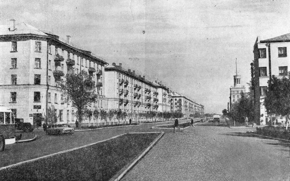 Планировка района 1952 г. и панорама главного проспекта в 1961 г. (ОГИК музей/goskatalog.ru)