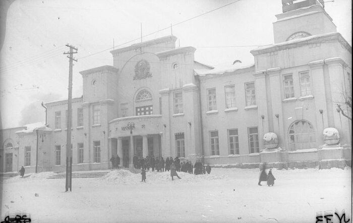 Здание ДК Лобкова в 1920-е гг., омского худпрома в 1927 г. и пр. Маркса в 1950-1960-е гг. с домом-комбинатом справа (ОГИК музей/goskatalog.ru, В. И. Кочедамов, "Как рос и строился город")