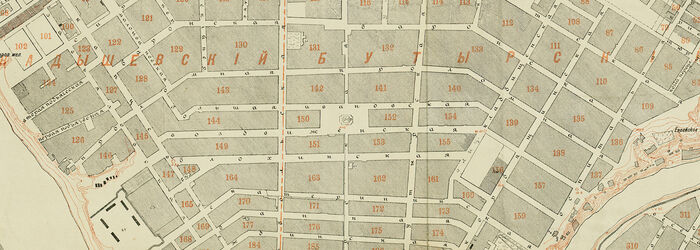 Фрагмент плана Омска 1904 г. с Крестовоздвиженским собором в центре (библиотека им. А. С. Пушкина/elib.omsklib.ru)