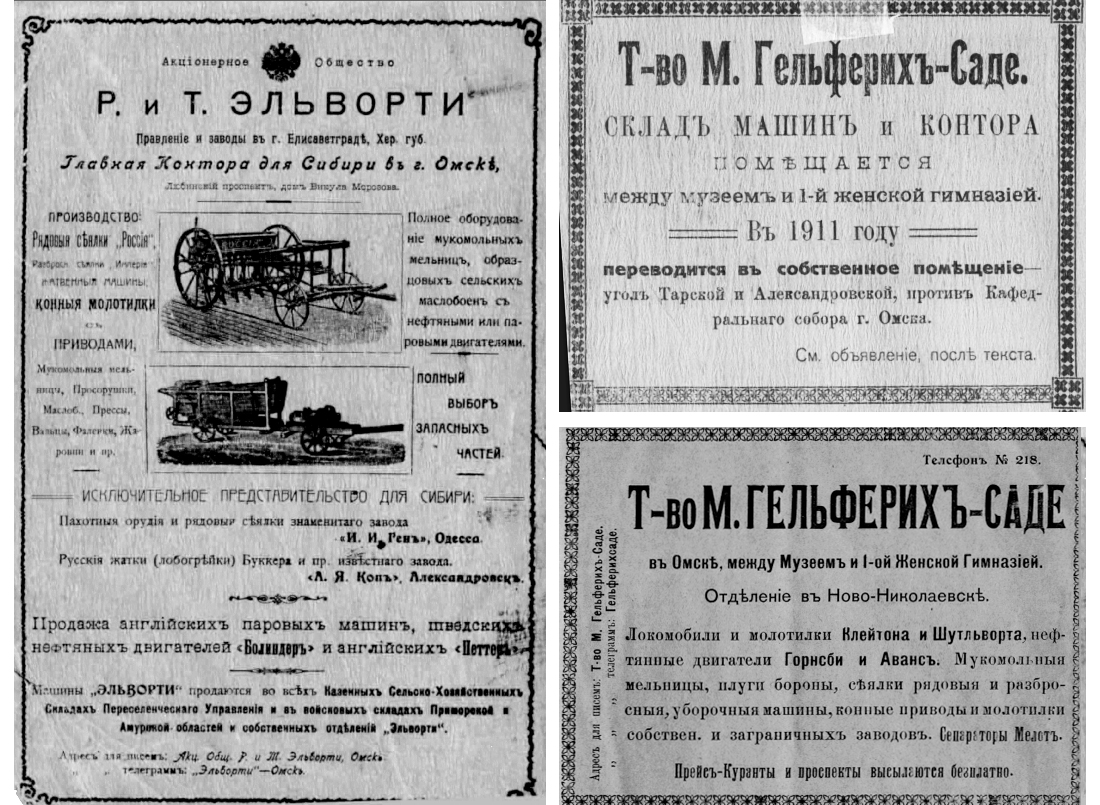 Рекламные объявления с/х контор в справочнике "Весь Омск" за 1911 г. (Национальная электронная библиотека/rusneb.ru)