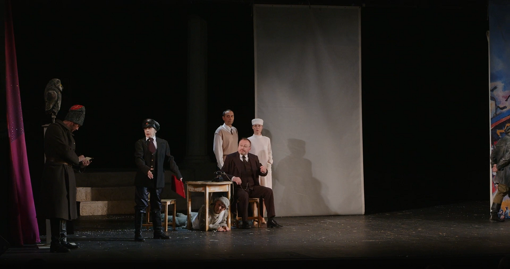 В тот же вечер, 18 ноября, прошёл показ первого гастрольного спектакля "Собачье сердце" по одноимённой повести Михаила Булгакова, которая рассказывает о фантастическом превращении собаки в человека доктором Преображенским. Это классическое прочтение булгаковского сатирического текста о человеческой трагедии ещё 10 лет назад поставил для театра режиссёр Михаил Филимонов.