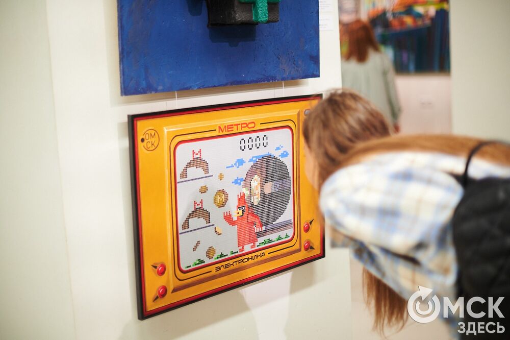 Омская птица в компании с другими мемами - метро и шаром "Держава", "пытавшимся покинуть Омск", художницы Анны Кирилловой на выставке городских смыслов