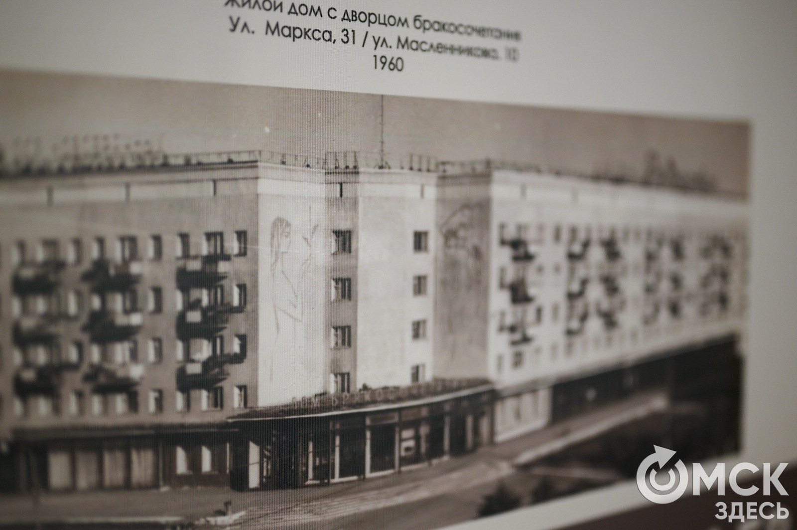 Часть экспозиции Дней архитектуры в Омске, посвящённая 90-летию омского отделения Союза архитекторов России и зодчим того времени. Здания на ул. Орджоникидзе, Музейной, пр. Маркса
