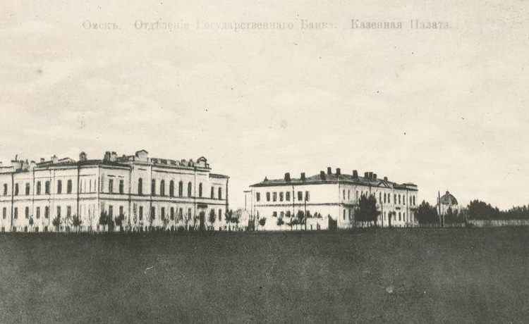 Отделение Государственного банка в Омске, 1920-е гг., Банковский переулок, 1. Источник: Дрейлинг И. П. (автор копии), ОГИК музей/goskatalog.ru