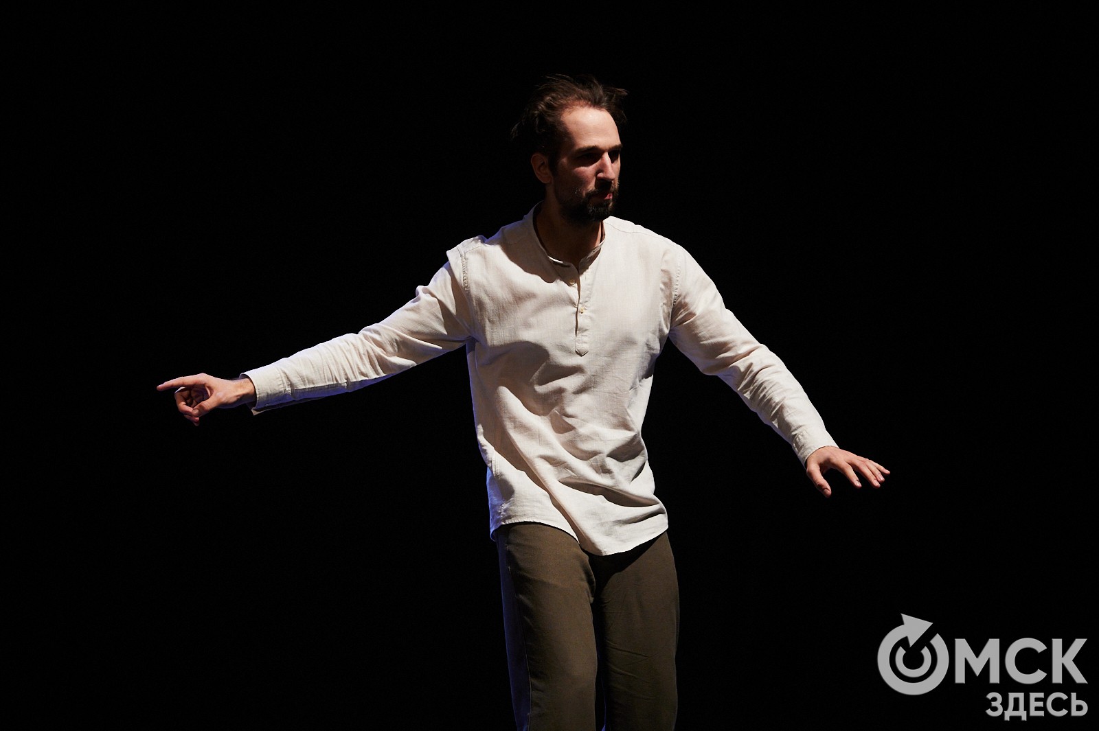 Проводником в мир духовного становления мужчины становится некий деревенский музыкальный ансамбль: Артем Савинов с гитарой, Андрей Винокуров с баяном, Даниэль Савинова с кахоном и Анастасия Загоруй с треугольником. А руководит ими взвинченный дирижёр (Евгений Власов). Мужчина невероятно влюблён и боится, что его избранница не сможет оценить масштаб его душевных терзаний. "И что же ему делать с этой сердечной мукой, как излечиться?" - спрашивает он у зрителя. "Жениться!" - звучит уверенный ответ одной из зрительниц, видимо, проникнувшейся историей лирического героя.