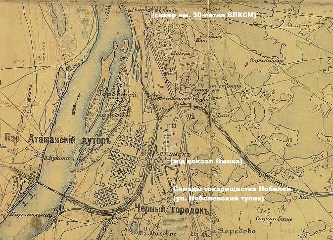- В начале ХХ века товарищество торговало керосином и нефтепродуктами и в Омске, где для работы складов построили отдельную ветку - железнодорожный тупик. Он не был обозначен на карте, но в народе тупик прозвали Нобелевским. Официально название "Нобелевский тупик" закрепилось в 1950-е годы, - рассказали в Историческом архиве Омской области.
