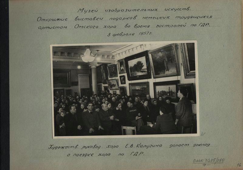 Выставки, посвящённые А. С . Пушкину и товарам народного потребления, 1930-х гг.; выставка подарков, привезённых Омским хором подарков немецких трудящихся артистам Омского хора из гастролей по ГДР. Фото: ОГИК музей/goskatalog.ru