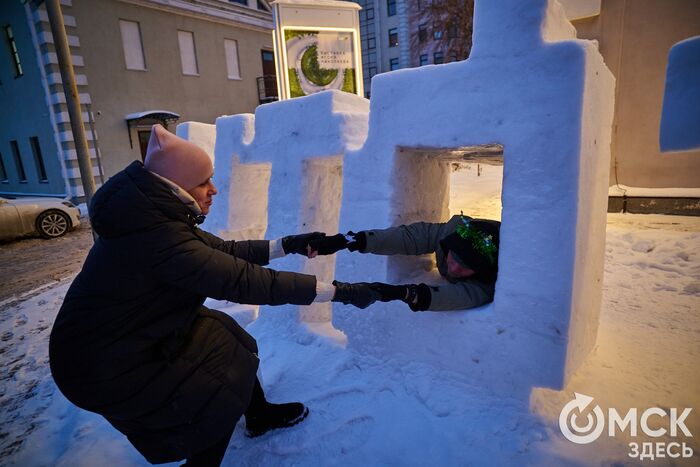 Как минимум с прошлой недели перед зданием находились, казалось бы, странно сколоченные ящики выше человеческого роста. Вопросы о том, что там и для чего, разрешились ещё одним вопросом. Накануне вечером музей "Искусство Омска" презентовал "пиксельную скульптуру "Кто тут?", вырезанную из спрессованного снега. Автором выступил художник, акционист и галерист Дима Вирже ("Левая нога", напомним, сейчас находится в баре на пр. Маркса вместе с инициативой по поддержке локальной сцены "Атас!").